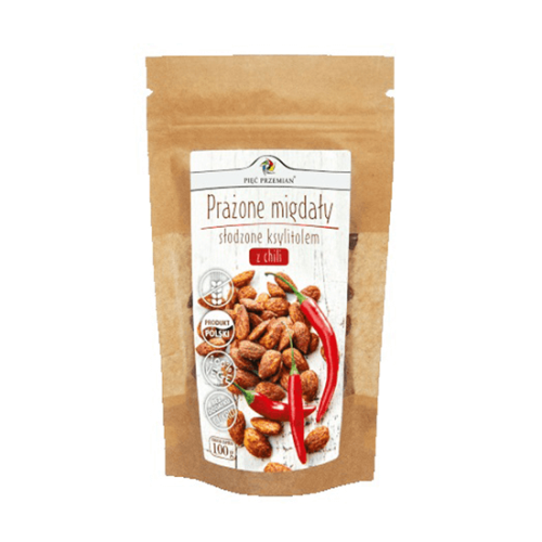 Prażone migdały z ksylitolem, papryczką chili i solą himalajską 100g pięć przemian